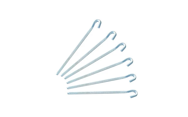 Geprägt mit dreikantigem Profil. Stärke 7-8 mm, deshalb unverwüstlich auch bei extrem hartem Boden. Verzinkt.