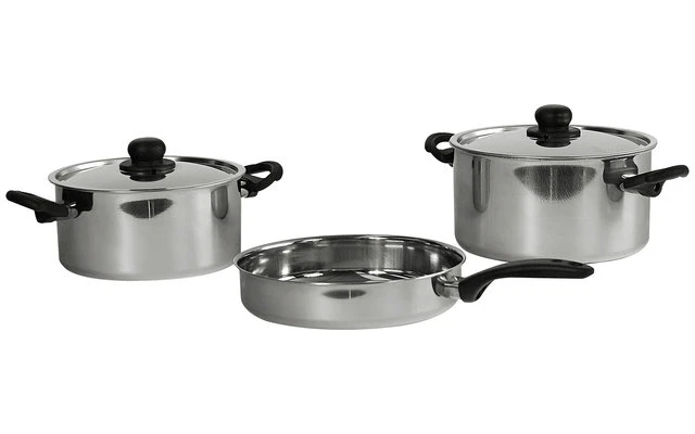 Topfset mit fest montierten Griffen aus hochwertigem Edelstahl.