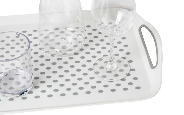 Faltbarer Geschirrabtropfer mit Besteckhalterung. Aus Kunststoff.