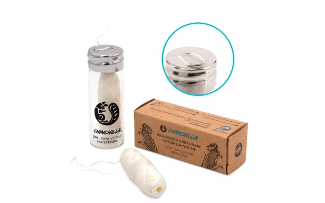 - Vegan und plastikfrei: Die Zahnseide aus Maisstärke und Candelillawachs ist 100% vegan und kommt im stylischen Glasflakon als 30 m Variante. Die Zahnseide kann ganz einfach nachgefüllt werden.