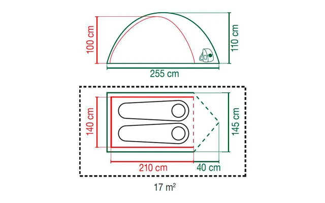 Kompaktes Kuppelzelt für 2 Personen mit BlackOut Bedroom™ Technologie für einen erholsamen Schlaf, großer Vorraum und abgeklebte Nähte, WS 4500 mm