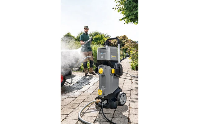 Der Akku-Hochdruckreiniger HD 4/11 C Bp von Kärcher bietet mobiles Hochdruckreinigen auf höchstem Niveau ohne externe Stromquelle und ohne störende Kabel. Der erste akkubetriebene Profi-Hochdruckreiniger HD 4/11 C Bp ist die perfekte Lösung für mobile Reinigungsarbeiten im Kommunalbereich, im Landschaftsbau oder auch für Hausmeister. Er arbeitet mit zwei leistungsstarken 36-Volt-Lithium-Ionen-Batterien, was ihm lange Arbeitseinsätze und eine hohe Reinigungsleistung ermöglicht. Die sparsame und wirtschaftliche eco!efficiency-Stufe spart bei Bedarf Energie und verlängert die Laufzeit des Akkus, bei reduzierter Reinigungsleistung für leichtere Verschmutzungen. Die automatische Druckentlastung schützt die Komponenten und verlängert die Lebensdauer, und der große, bequem erreichbare Wasserfeinfilter bewahrt die Pumpe vor Schmutzpartikeln im Wasser. Der integrierte Tragegriff auf der Gerätevorderseite des HD 4/11 C Bp und der auf Knopfdruck einfahrbare Schubbügel ermöglichen ein leichtes Verladen und einen bequemen Transport des Akku-Hochdruckreinigers.