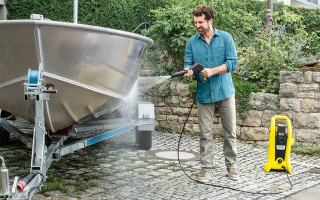 Glänzt auch ohne Stromanschluss: der akkubetriebene Hochdruckreiniger für vielseitige Anwendungsgebiete wie kleinere Autos, Boote, Gartenmöbel, Mülltonnen und weitere kleinere Reinigungsaufgaben rund ums Haus. Dank Standard-, Boost- und Reinigungsmittel-Modus lassen sich die verschiedenen Reinigungsobjekte mit genau dem richtigen Druck bearbeiten. Auf dem analogen Display der Hochdruckpistole wird der gewählte Modus während der Reinigung dauerhaft angezeigt. Die einzelnen Druckstufen können bequem durch den Wechsel des Strahlrohrs eingestellt werden. Das Gerät ist kompatibel mit dem 36 V / 5,0 Ah Li-Ion Wechselakku aus der 36 V Kärcher Battery Power-Plattform. Akku und Ladegerät sind als Sonderzubehör separat erhältlich. Zudem kann ein Kärcher Ansaugschlauch angeschlossen werden, um Wasser aus alternativen Wasserquellen anzusaugen.