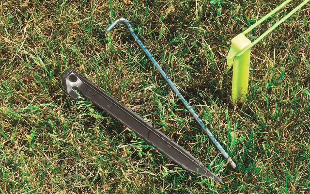 Strategisch gut platzierte Schienen ermöglichen es, Spezialhaken anzubringen, an denen Kabel und leichtes Zubehör bis zu 1,5 kg befestigt werden kann. - Outwell Guyline Retainer System: