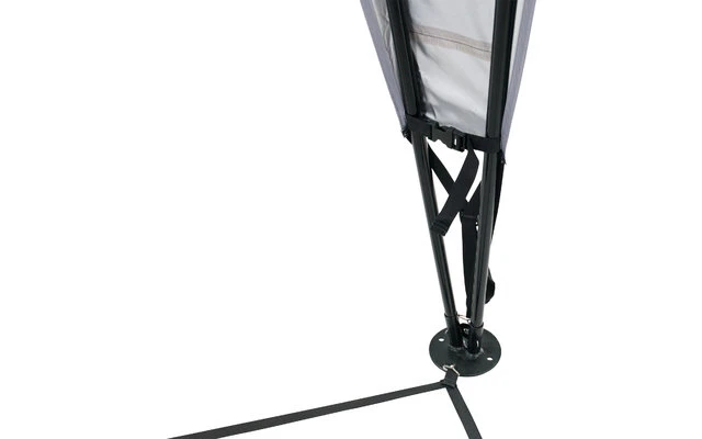Die Outwell Summer Lounge M und L bieten einen vielseitig nutzbaren, frei stehenden Unterschlupf. Die äußerst robuste und stabile Konstruktion zeichnet sich durch große Zugänge und eine bequeme Stehhöhe aus. Dank der Belüftungsöffnung an der Spitze, dem Aufhängepunkt für eine Laterne in der Mitte sowie zwei Netztaschen bietet die Lounge ein Höchstmaß an praktischer Flexibilität. Der widerstandsfähige Stoff Outtex 1500 Pro Silver bietet einen UV-Schutzfaktor von über 50. Um einen größeren geschützten Aufenthaltsbereich zu schaffen, können miteinander kompatible Schutzdächer über eine Regenrinne verbunden werden.