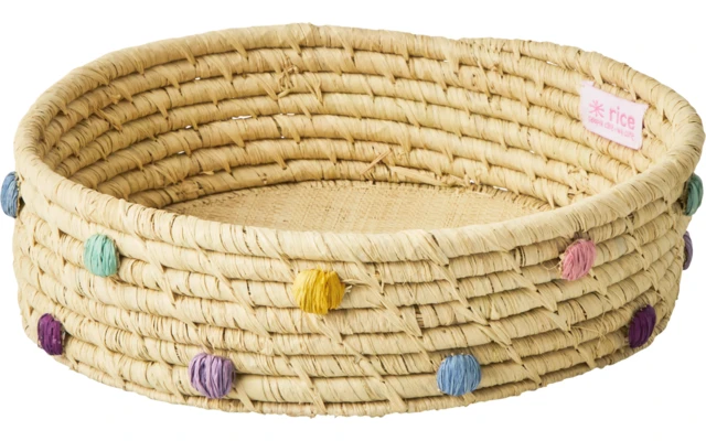 Handgefertigter runder Bastkorb. Hervorragend zum Aufbewahren der kleinen und großen Dinge des Alltags. Die Farben verblassen mit der Zeit etwas und schneller, wenn sie direktem Sonnenlicht ausgesetzt werden. Kontakt mit Wasser vermeiden, da die Farben abfärben können. Der Korb hat Richtmaße von H7 und T25 cm.
