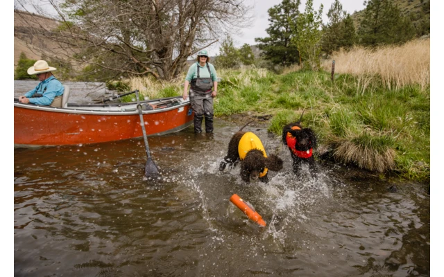 Die Weste besteht aus umweltfreundlichem Gaia Schaumstoff, verfügt über innovative Details und einen fest verankerten Griff, welcher optimal positioniert ist, um den Hund aus dem Wasser ins Boot zu heben.