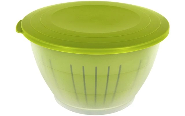 9-teiliges Set aus der Schüssel-Serie »Olympia« bestehend aus 4 runden Schüsseln mit passenden Deckeln und einem Seiher (23 cm) mit vertikalen Schlitzen für einfaches Ablaufen des Wassers, Schüsseln mit Deckel: Zum Aufbewahren, Transportieren und Servieren von kleinen Snacks bis hin zu großen Salaten, Seiher: Zum Waschen und Abtropfen von Gemüse.